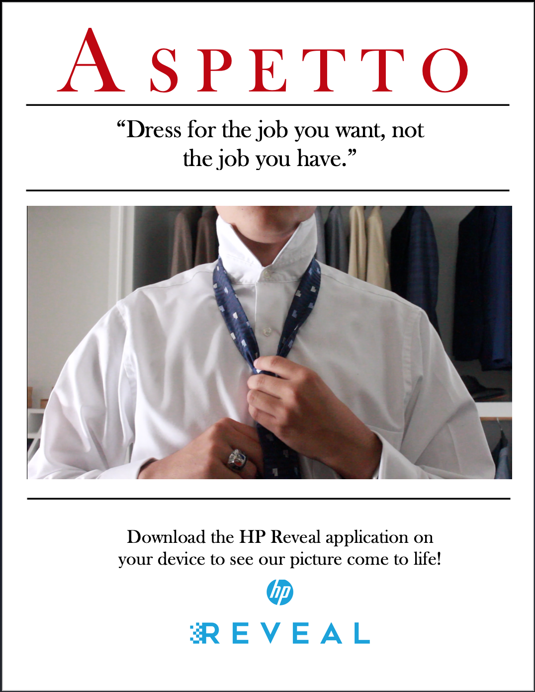 The group that created this advertisement also created a flyer for Aspetto (founded by two UMW alumni). The ad wanted to showcase the clothing options and prices consumers have at Aspetto.